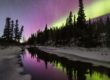 The northern lights display above silhouetted spruce trees in Denali National Park, Alaska. Taken on August 18, 2:36 A.M.