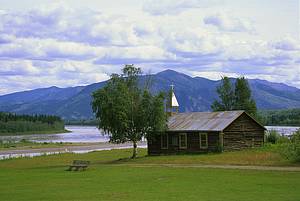 Log cabin church along the Yukon River, Native village, Eagle, Alaska