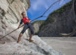 Pilot Doug Glenn drops a load of salmon fry into Crosswinds lake from his crop duster airplane. About 10 million fry in total get dumped in the lake over a two day period. Mount Drum, of the Wrangell mountains in the distance.