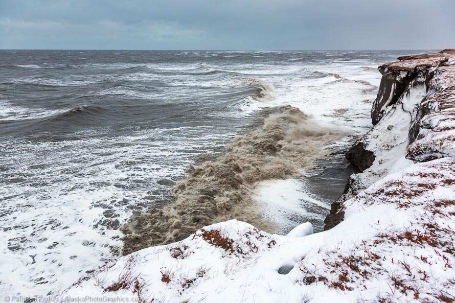 Storm waves beat upon the cliff side shore along Alaska’s arctic coast. Canon 5D Mark III, 24-105mm f/4L IS, 1/50 sec @ f/8, ISO 800