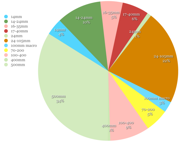 Being somewhat given to the metrics behind our lives, I usually do a quick analysis of the lenses that I used in the course of a year. 2014 showed quite a change over 2013, as I favored the 24-105mm lens considerably. This was in a large part due to all of the human powered trips…
