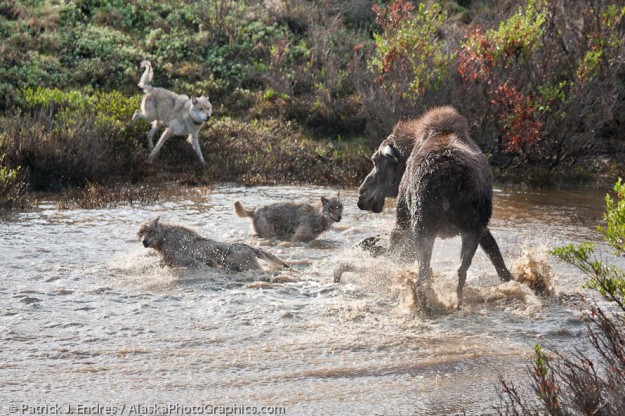 As a follow up to my previous post “wolf pack kills moose calf” last week, in which a colleague and I photographed a predator/prey scene in Denali National Park, I thought I’d make a few comments on the photographic equipment and technical side of that shoot, and then share a few pictures taken following the…