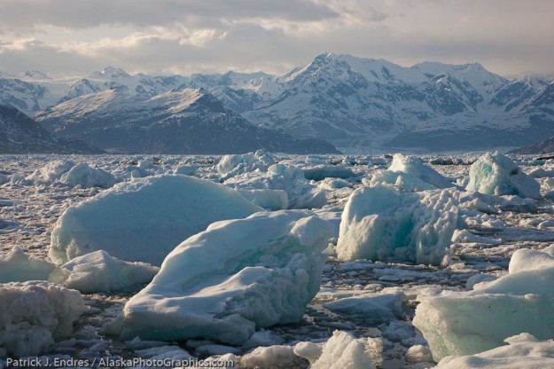 The Columbia glacier in Prince William Sound has been receeding rapidly for many years, and all the chunks of ice in this photo are trapped in a tidal lake by an old glacial morraine. Its truly a wild place to explore and walk around. I took this picutre after climbing on top of another large…